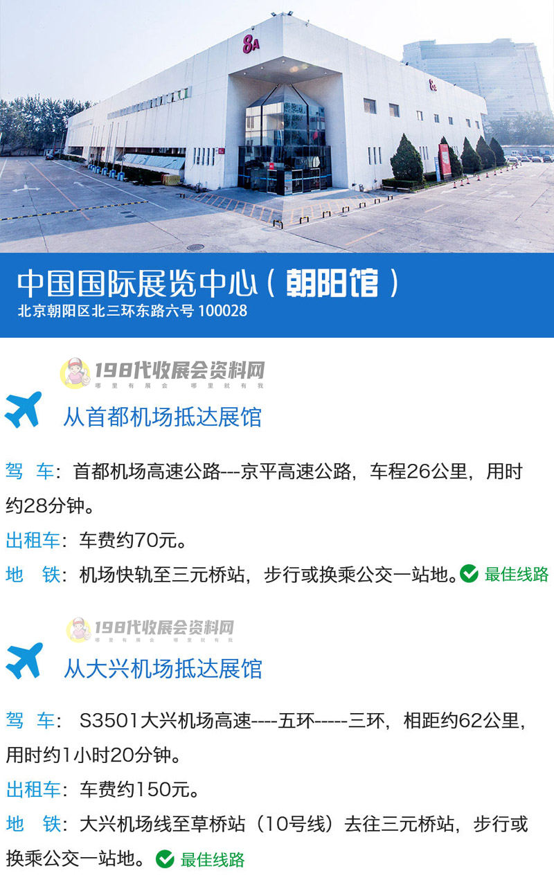 首都機場:乘坐出租車約10公里可到展館。
